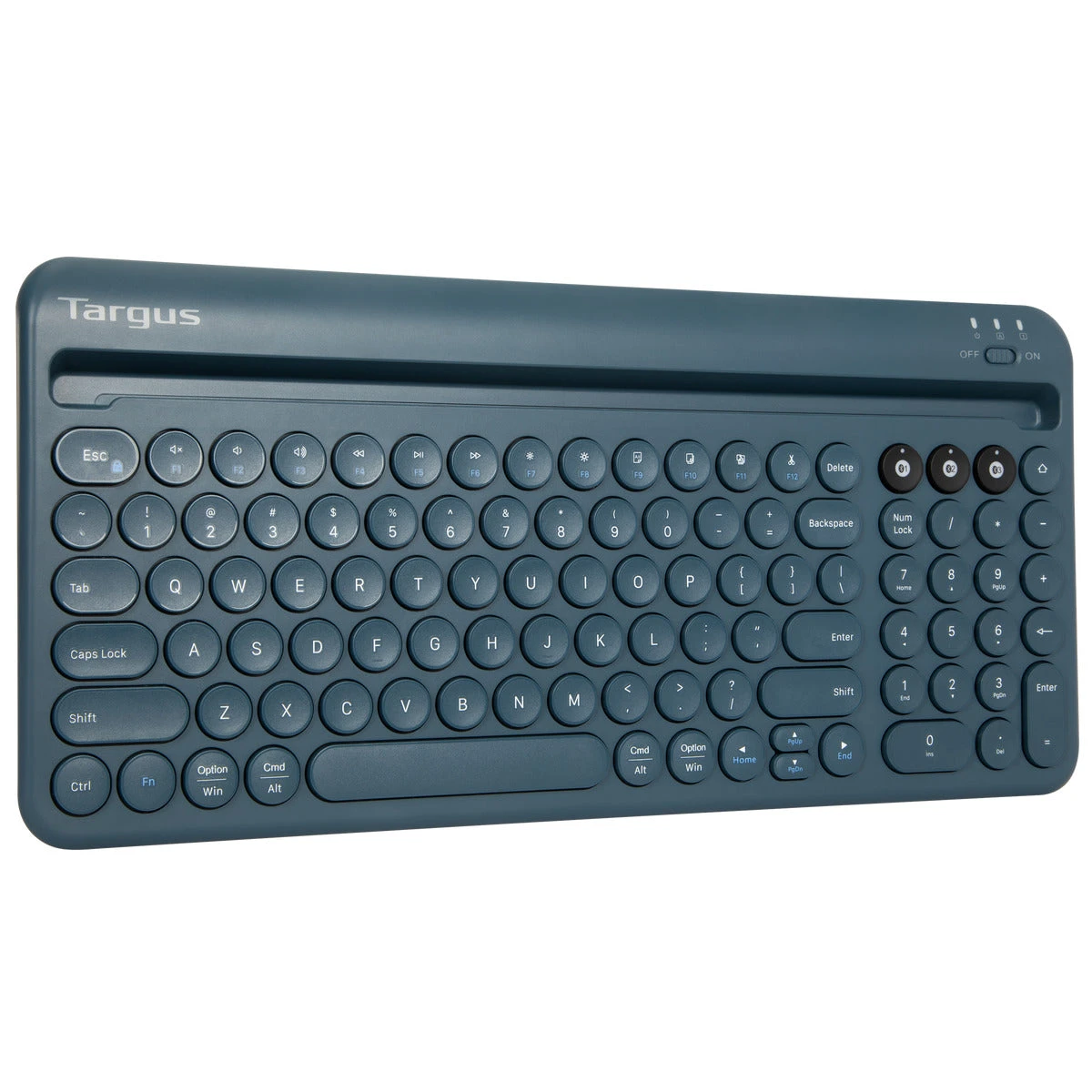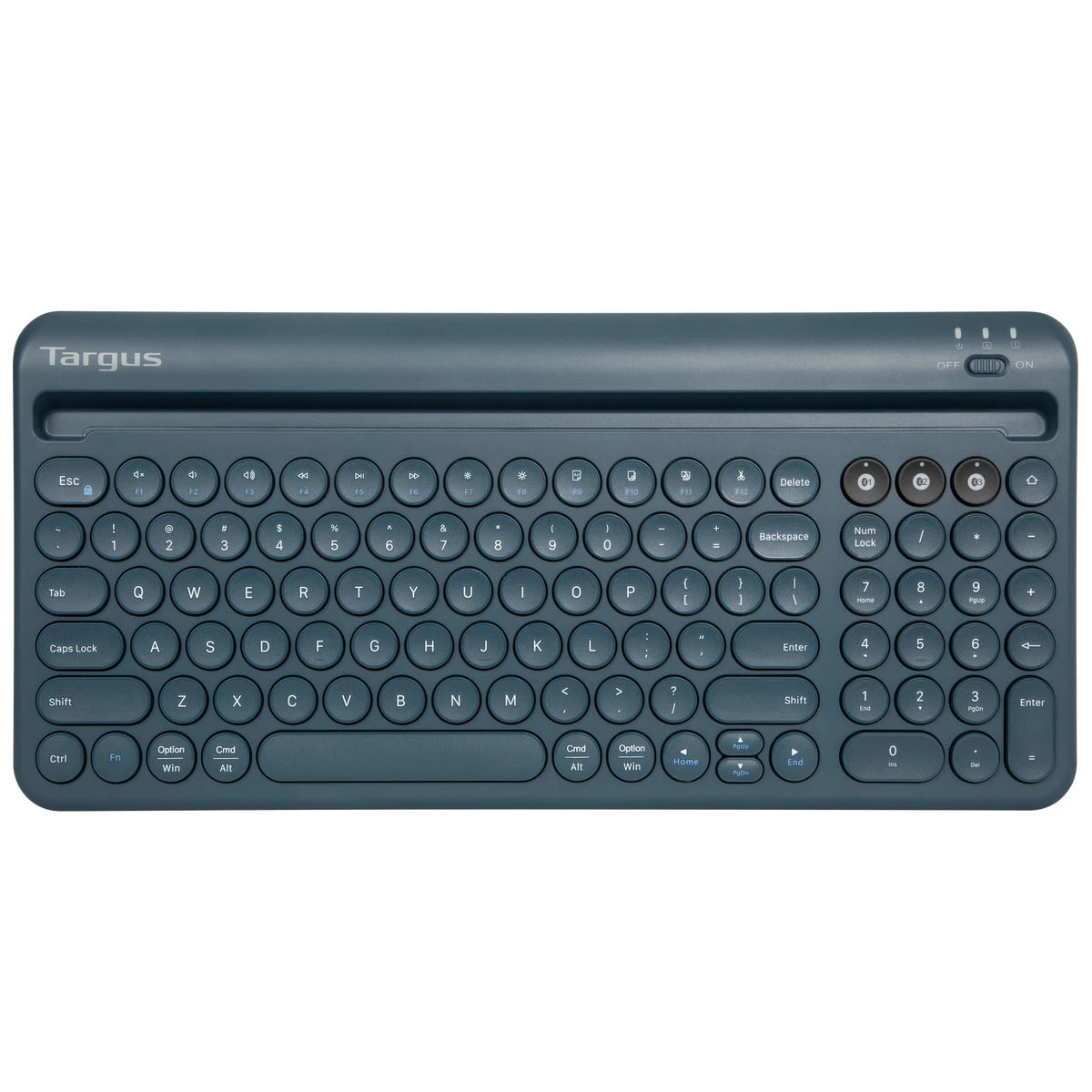 Targus Multi-Device Bluetooth® Antimicrobial Keyboard With Tablet/Phone Cradle (Blue)